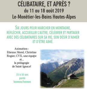 Si vous êtes en situation de célibat et que vous souhaitez prendre 6 jours pour marcher en montagne, réfléchir et partager avec d’autres, plus d’infos sur le site www.celibetapres.org