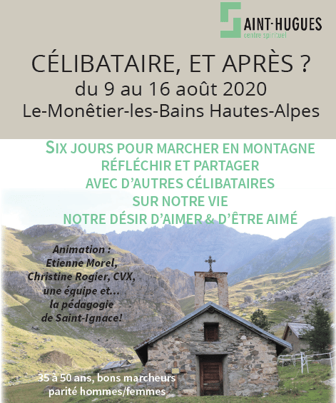 Le centre Saint-Hugues, centre spirituel ignatien animé par des laïcs de la Communauté de Vie Chrétienne (CVX), organise depuis une quinzaine d’année une session retraite pour les personnes en situation de célibat de 35 à 50 ans. La session est animée par Étienne Morel (diacre), Christine Rogier (CVX), une équipe, … et la pédagogie de saint Ignace !