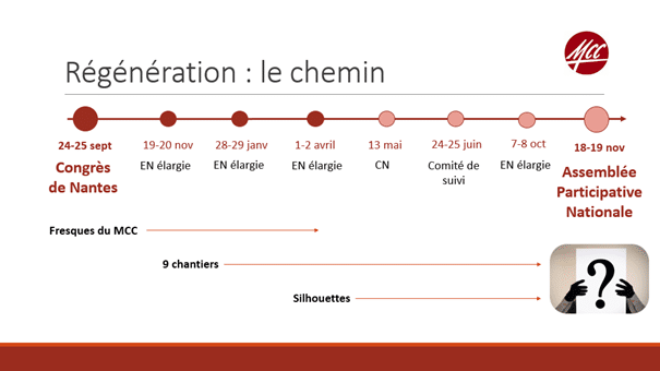 C’est dans cette Confiance que nous avançons maintenant ensemble vers notre Assemblée Participative Nationale. À partir d’une dizaine de questions structurantes issues de tout le travail antérieur, qui seront validées à l’Équipe Nationale des 7 et 8 octobre, vos délégués y discerneront les orientations de notre Mouvement pour les prochaines années.