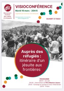 Dans la dynamique de l’encyclique Fratelli tutti et du thème du Congrès « Passeurs d’avenir », les équipiers de Lille ont choisi de se laisser interroger par la question des migrants en invitant Maurice Joyeux, jésuite, ancien directeur du Service jésuite des réfugiés (JRS) à Athènes, à l’occasion de leur soirée brassée annuelle par visioconférence le 16 mars.