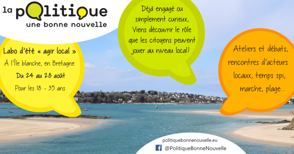 La session d’été de la Politique, une bonne nouvelle (PBN) revient en 2019 ! Nous vous proposons trois jours de réflexion et d’échanges sur le thème de l’engagement citoyen au niveau local en tant que chrétien. Les inscriptions sont ouvertes ! Alors, cap sur la Bretagne fin août : cette session est pensée pour vous !
