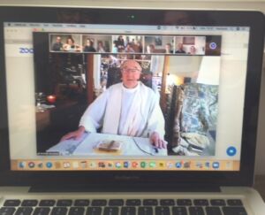 La pandémie n’a pas permis au groupe de se voir mais, grâce à l’installation d’une web-cam suivie d’un cours en informatique, Berthold est resté en contact avec le groupe, faisant l’effort de manier Zoom ou Teams comme personne pour assister à nos réunions virtuelles. Notre aumônier a ainsi officié pour quelques messes, les dimanches matin, via Teams, pour les membres de son équipe depuis son domicile. Un moment de communion intense malgré les écrans d’ordinateurs !