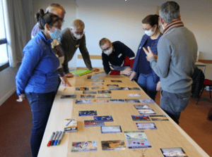 Près de quarante équipiers et 5 animateurs se sont retrouvés pour une « fresque du climat » au centre diocésain de pastorale à Clermont-Ferrand, le samedi 5 février : quatre tables d’adultes et une table de cinq jeunes de 10 à 19 ans ont découvert trois heures durant les cartes du jeu dont les données scientifiques ont été établies et rédigées par le GIEC (dont le prochain rapport paraîtra en février 2022). L’atelier, ludique et participatif, a pour objectif de sensibiliser aux enjeux du dérèglement climatique afin de permettre à chacun de trouver des solutions et d’agir.