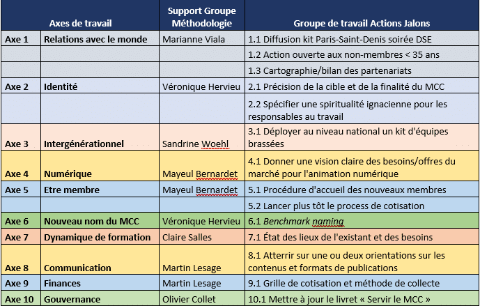 - l’axe 8 Communication aurait besoin d’un regard neuf sur l’avenir du Mouvement avec une équipe élargie au-delà du Comité de Rédaction de Responsables ;
